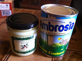 Crème custard et brandy butter (très bon sur des pancakes, j'ai testé hier).